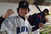本日のヒーローは・・・ルーキーで開幕1番で3安打の新Ⅱこと山添選手 【山添選手コメント】 「今年のレイバンスの最初の試合で最初のバッター ということで少し緊張しました。 野球のノウハウがわからないので、まずは座学から。」 ※写真右は、ヒーローを奪われてがっかりの佐藤選手